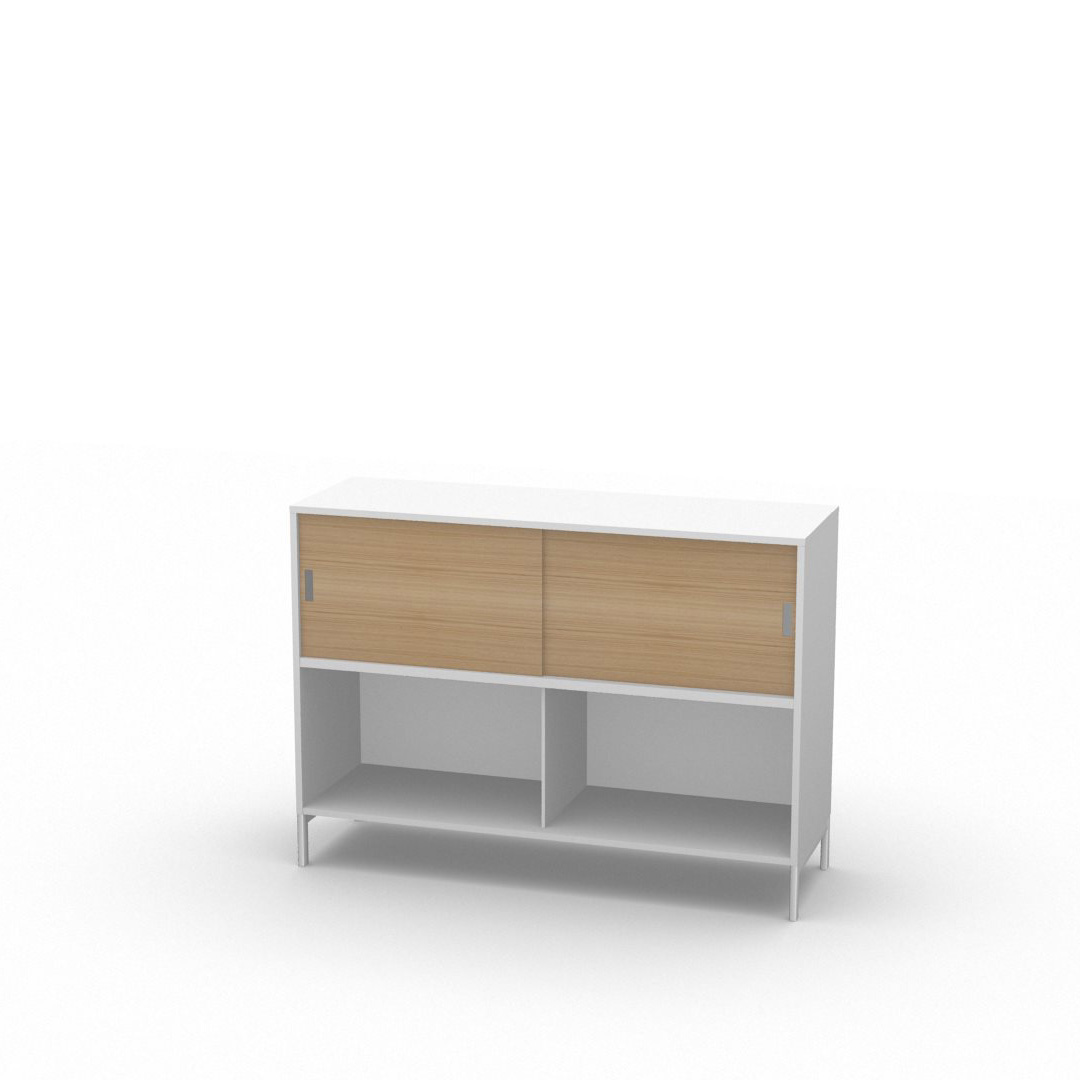 Neat 2xA4 är i 2 pärmhöjder. Skåpet är öppet.