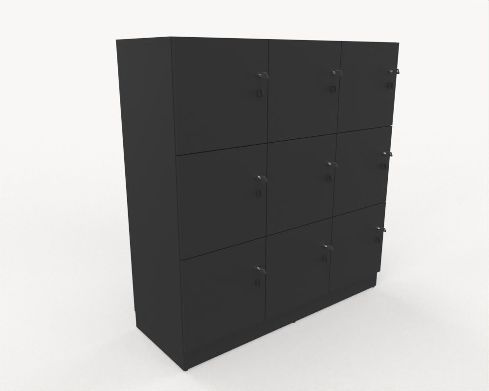 Personlig förvaring i exklusiv svart lack. Låsbar med nyckel.