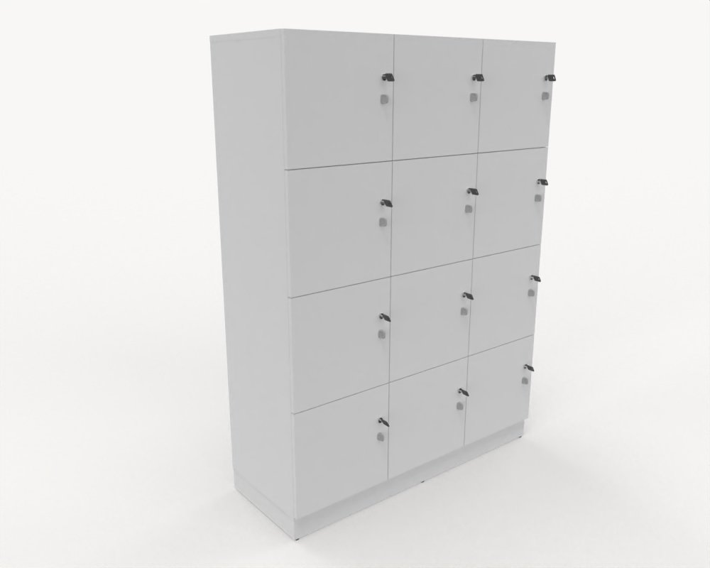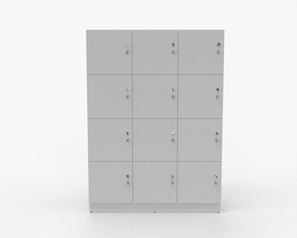 Personlig förvaring med 12 skåp, låsbara luckor med nyckel.