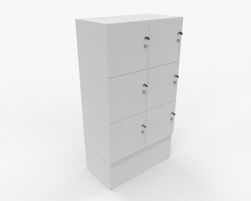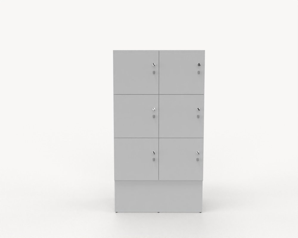 Personlig förvaring med 6 skåp, låsbara luckor med nyckel.