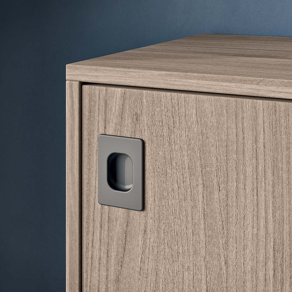 Ett modernt förvaringsskåp med låsbara skjutdörrar i serien Quadrio.