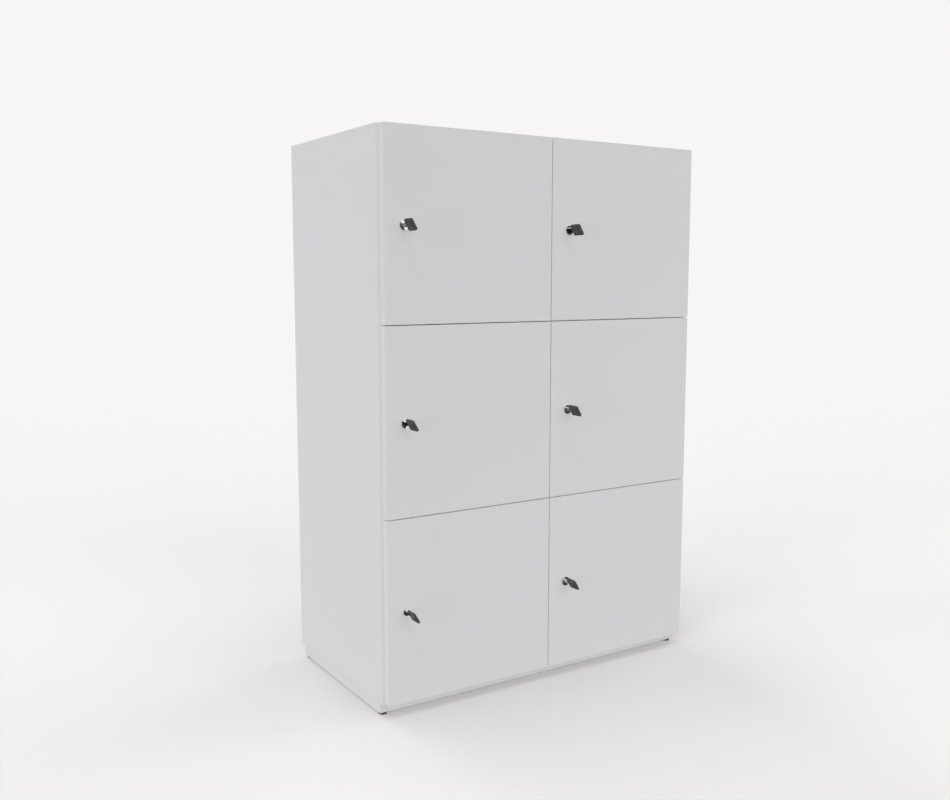 Detta skåp är med 6 st låsbara fack med nyckel och högerhängda dörrar.