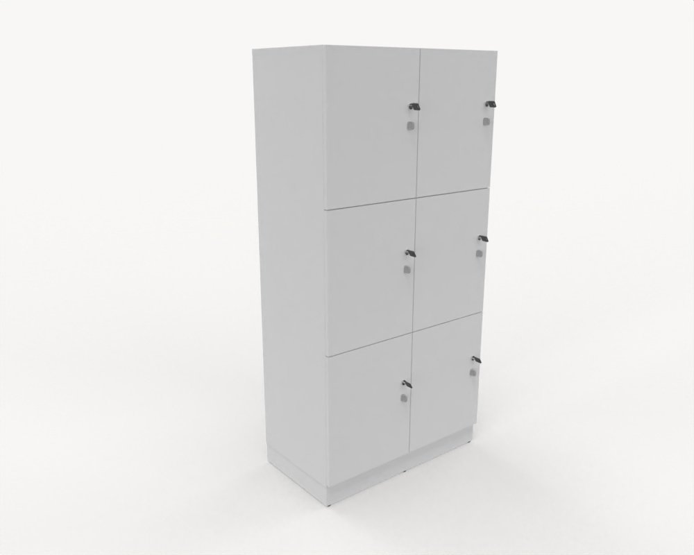 Personlig förvaring med 6 småfacksskåp. Låsbara dörrar med nyckel.