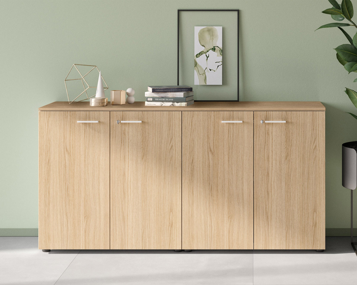 Quadrio lågt förvaringsskåp med låsbara dörrar. 1 st hyllplan per skåp,