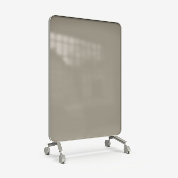 Mobil dubbelsidig skrivtavla i glas med rundade moderna former och ram i böjträ. Ram och fötter i grått utförande. Glas finns i 24 olika färger. Glasfärgen ”Soft 150” tillsammans med grå fötter och ram, ger en helt monokrom tavla. Optiskt glas garanterar skrivtavlans lyster. Magnetbärande yta.Finns i två olika storlekar:B75 x H196 eller B120 x H196 cm✔ Ram & fötter i grått✔ Glas i 24 standardfärger✔ Magnetbärande skrivyta✔ Optiskt glasKöp till startset med tavelsudd och magneter nedan.