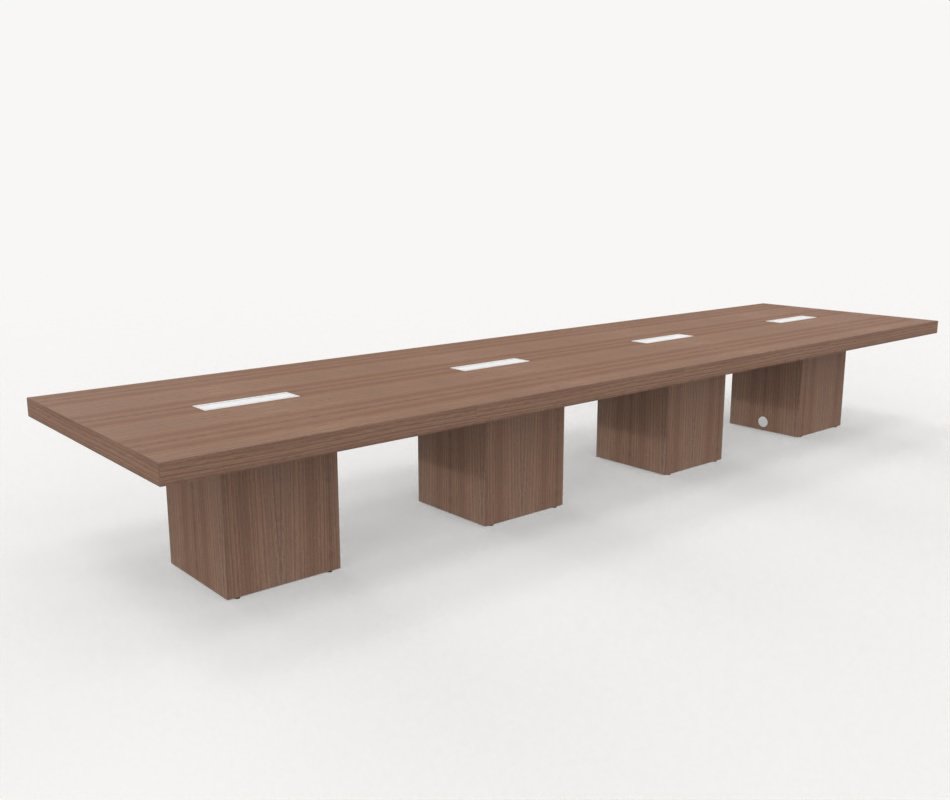 T45 ger konferensrummet ett elegant och gediget intryck, detta är ett mötesbordbord med rena linjer och stark personlighet. Bordet består av en tjock spånskiva med en matt laminatbeläggning och en imponerande kubformad bas med samma finish.Bordet är belagt med lättstädad, reptålig och antireflekterande laminat.Laminat finns i följande färger: alm, valnöt och eukalyptus.Benen är förstärkta med 2 mm matchande abs-kanter som ger extra stöttålighet.4 st kabelluckor för enkel hantering av kablar ingår. Välj färg: vit, mörkgrå eller krom.