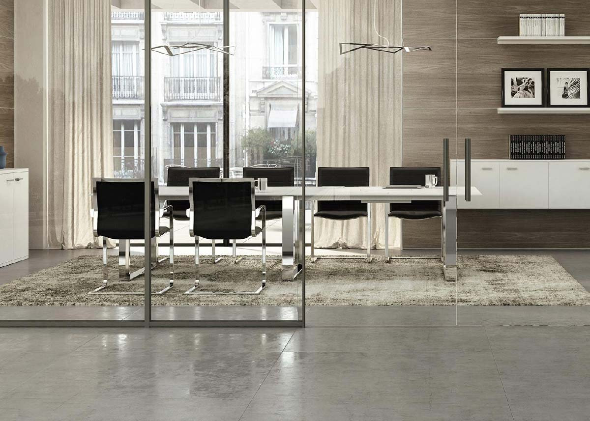 Exklusivt italienskt mötesbord med formade ben. Tunn elegant skiva med fasad kant