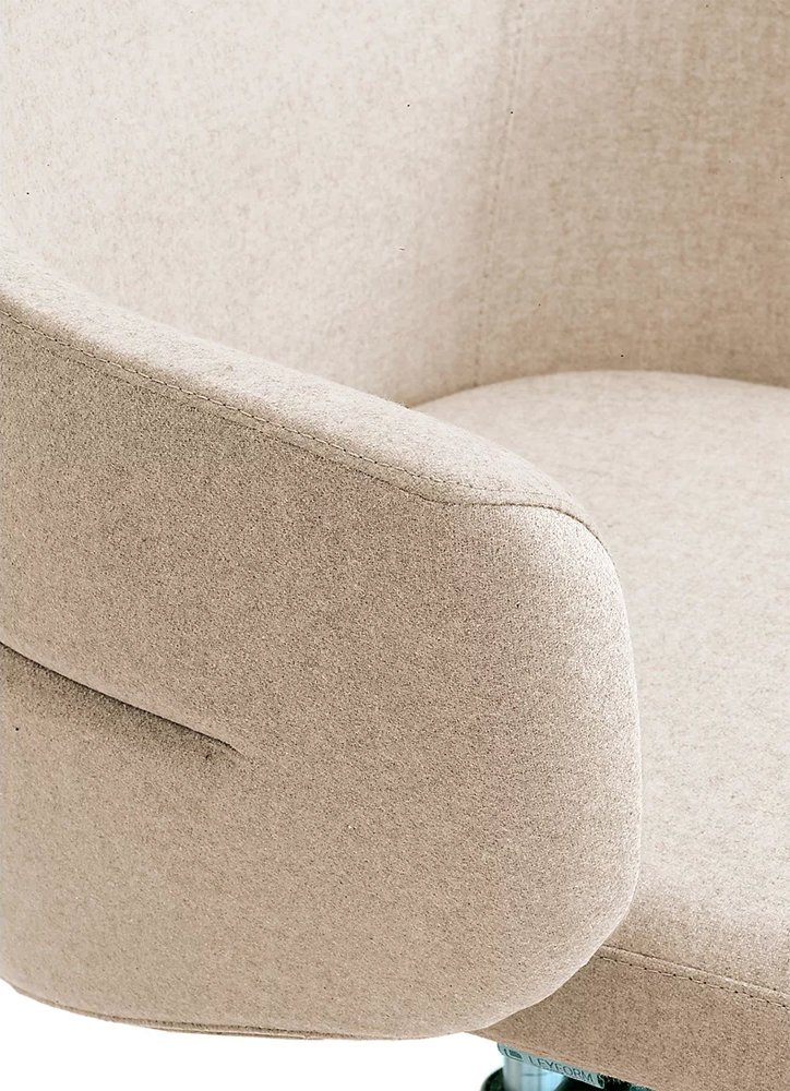 Modern och stilsäker kontorsstol med mjuka former och hög komfort.