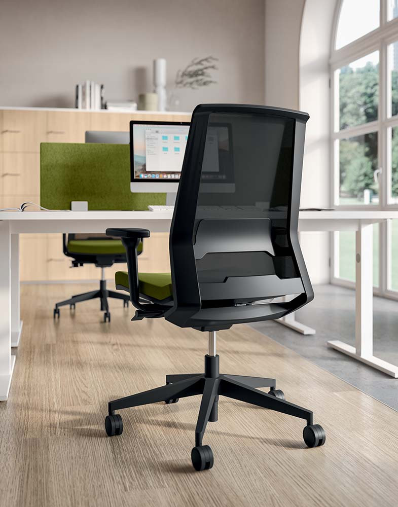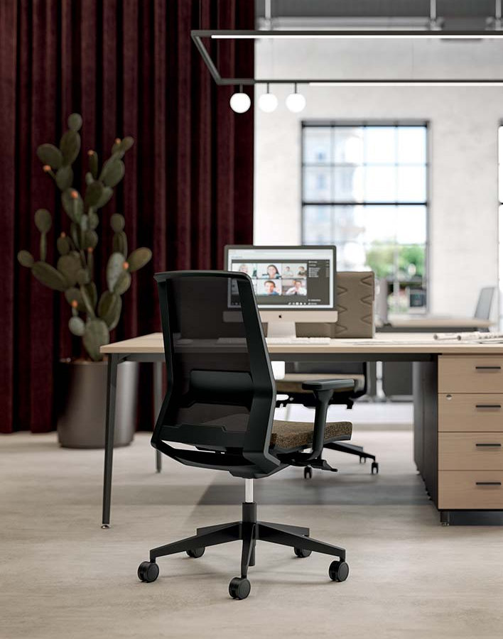 Prisvärd Italiensk arbetsstol med rygg i komfortabel svart mesh samt svankstöd.