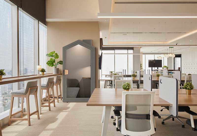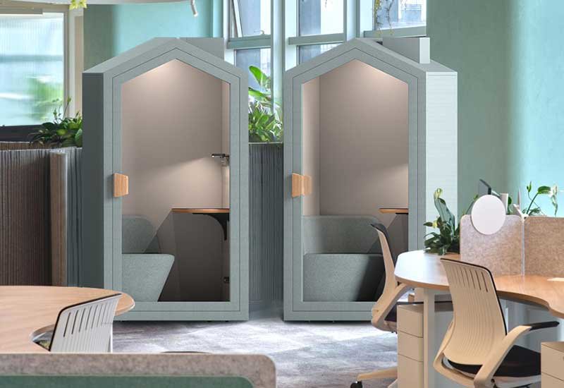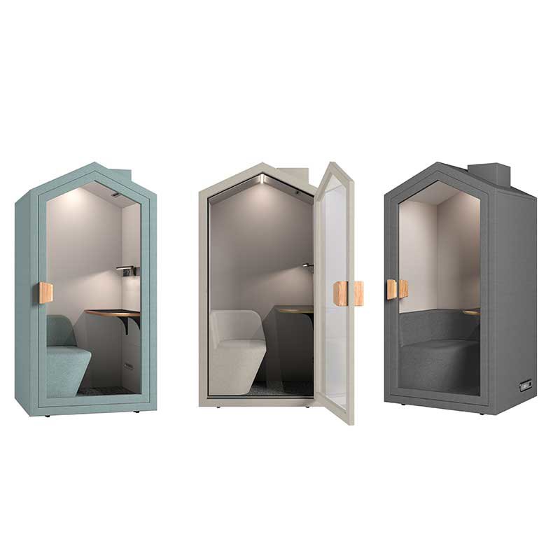 Lillstugan är ett fristående mötesbås där du kan arbeta eller hålla samtal ostört. Ett enkelt sätt att skapa en avskild plats för fokus, samtal eller individuellt arbete.