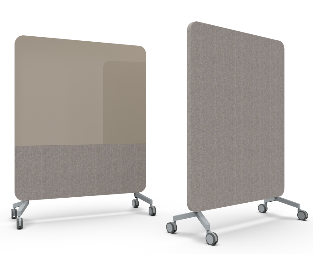 Large skrivtala i glas med tygklädd ljudabsorberande baksida.