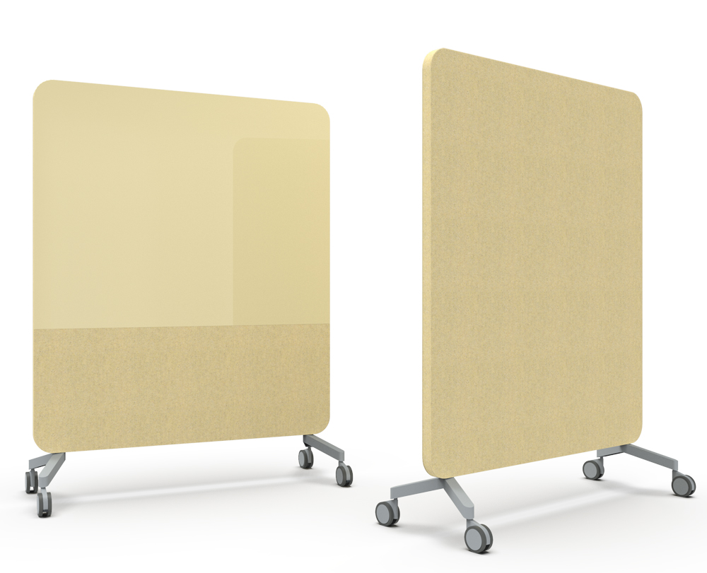 Large skrivtala i glas med tygklädd ljudabsorberande baksida.