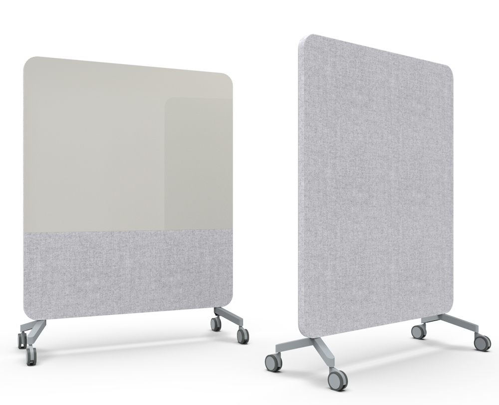 Large skrivtala i glas med tygklädd ljudabsorberande baksida.