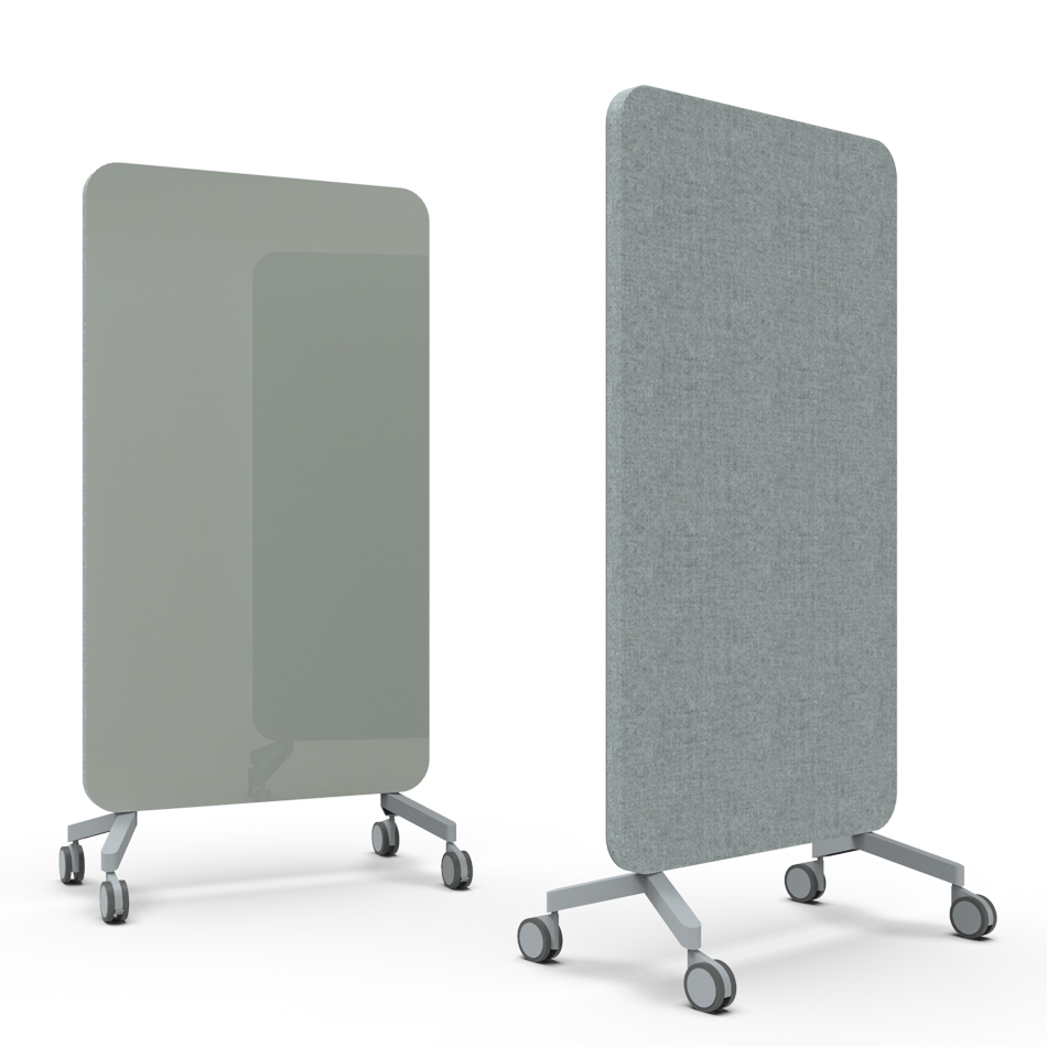 Medium skrivtala i glas med tygklädd ljudabsorberande baksida.