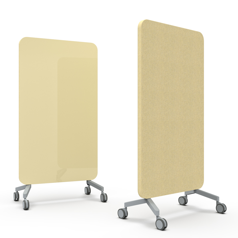 Medium skrivtala i glas med tygklädd ljudabsorberande baksida.