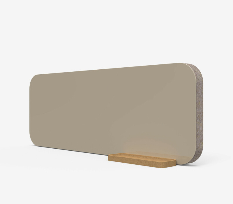 Bordsskärm med skrivyta i glas och tygklädd ljudabsorberande baksida. Mood Fabric