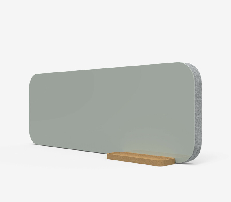 Bordsskärm med skrivyta i glas och tygklädd ljudabsorberande baksida. Mood Fabric