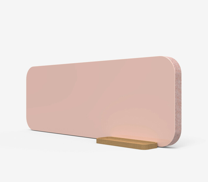 Bordsskärm med skrivyta i glas och tygklädd ljudabsorberande baksida. Mood Fabric