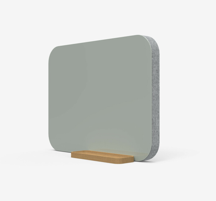 Bordsskärm med skrivyta i glas och tygklädd ljudabsorberande baksida. Mood Fabric
