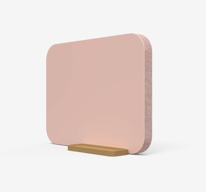 Bordsskärm med skrivyta i glas och tygklädd ljudabsorberande baksida. Mood Fabric
