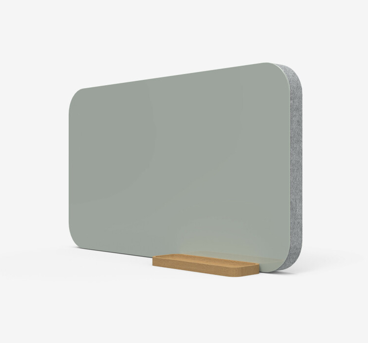 Bordsskärm med skrivyta i glas och tygklädd ljudabsorberande baksida. Mood Fabric