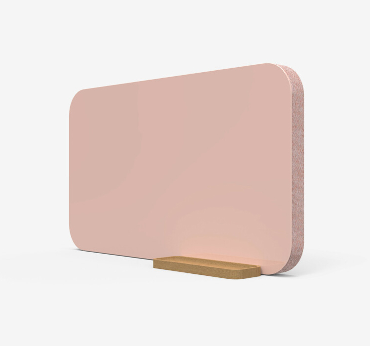Bordsskärm med skrivyta i glas och tygklädd ljudabsorberande baksida. Mood Fabric