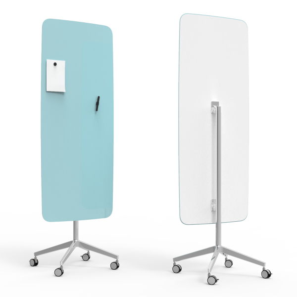 Mobil skrivtavla med rundade moderna former i härdat glas.