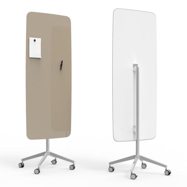 Mobil skrivtavla med rundade moderna former i härdat glas.