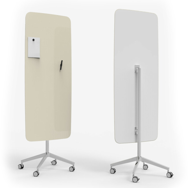 Mobil skrivtavla med rundade moderna former i härdat glas.