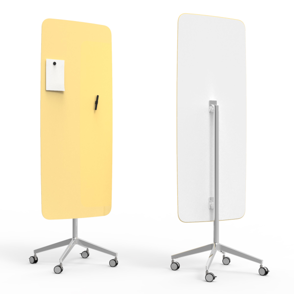 Mobil skrivtavla med rundade moderna former i härdat glas.