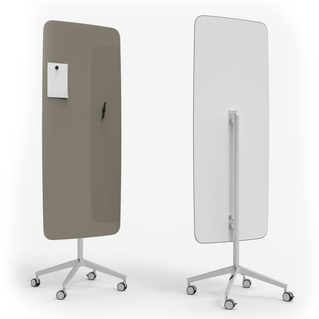 Mobil skrivtavla med rundade moderna former i härdat glas.