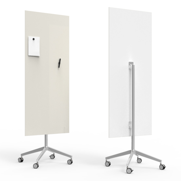 Mobil stilren skrivtavla i härdat glas med raka hörn.