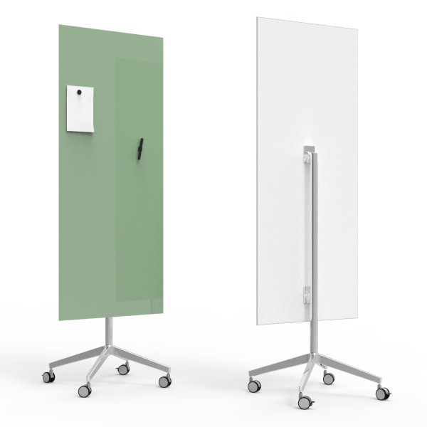 Mobil stilren skrivtavla i härdat glas med raka hörn. Fötter och ben i polerad aluminium. Välj mellan 24 olika färger.Optiskt glas garanterar skrivtavlans lyster. Magnetbärande yta, köp till startset med tavelsudd och magneter nedan.Levereras med blädderblockskrokar i polerad aluminium.✔ 24 standardfärger✔ Magnetbärande skrivyta✔ Optiskt glas