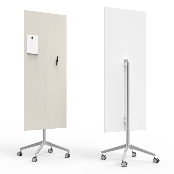 Mobil stilren skrivtavla i härdat glas med raka hörn.
