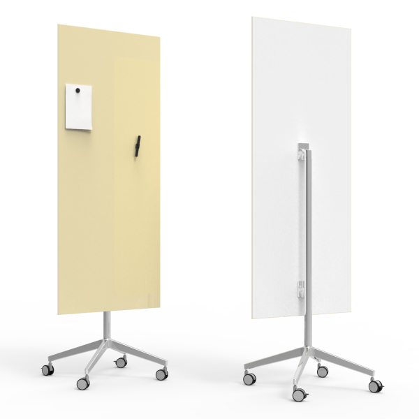 Mobil stilren skrivtavla i härdat glas med raka hörn.