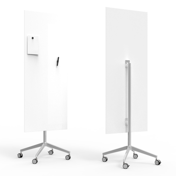 Mobil stilren skrivtavla i härdat glas med raka hörn.