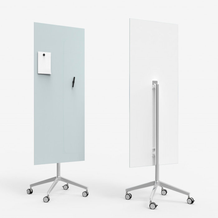 Mobil stilren skrivtavla i härdat glas med raka hörn.