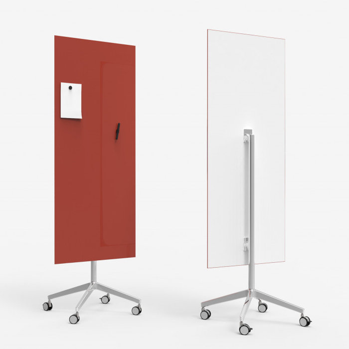 Mobil stilren skrivtavla i härdat glas med raka hörn.