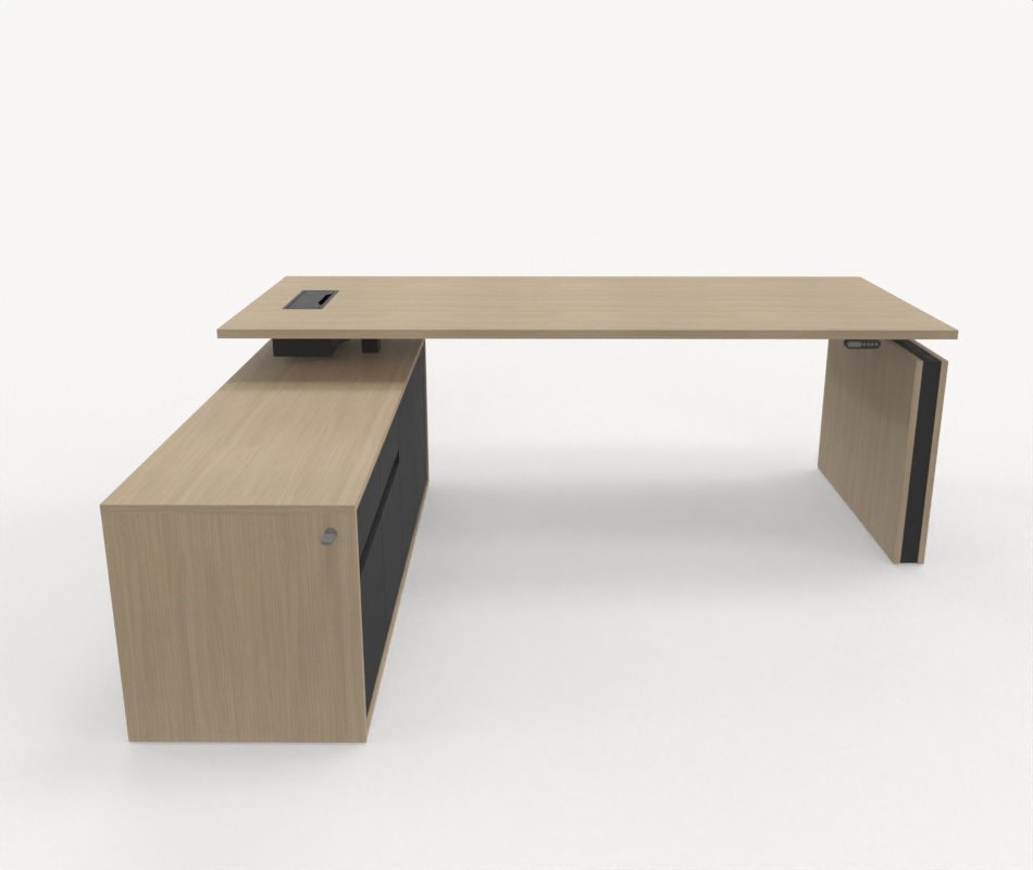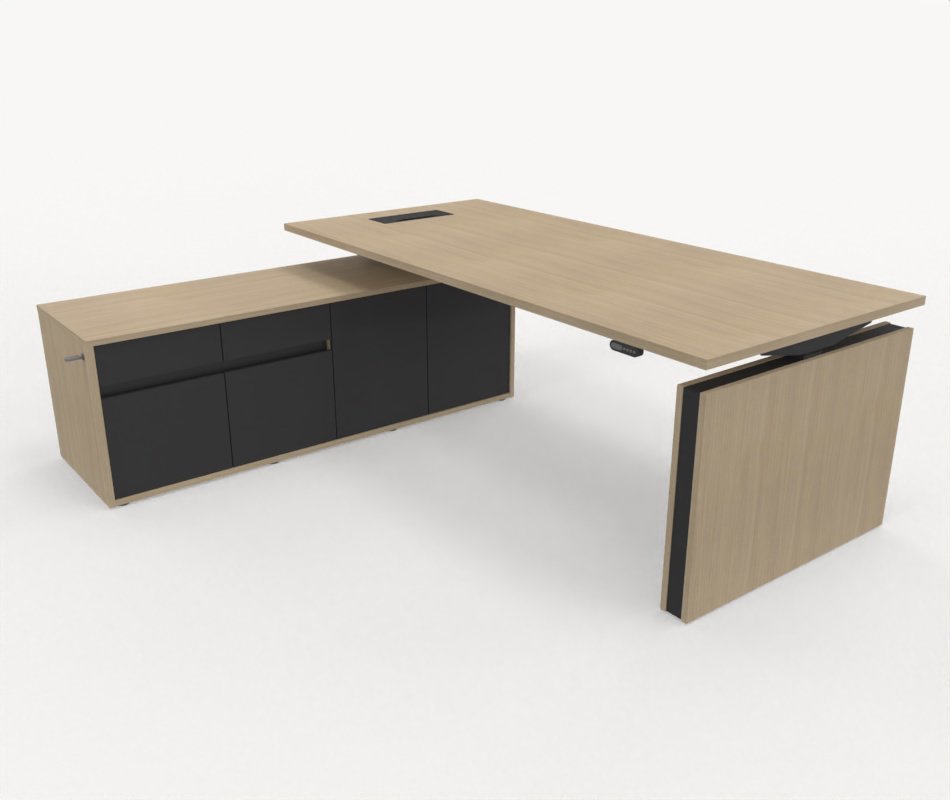 Höj- och sänkbart skrivbord med förvaring och skåp