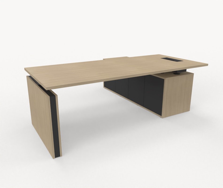 Stort höj och sänkbart skrivbord med förvaring. Perfekt kombination av ergonomi och funktion.
