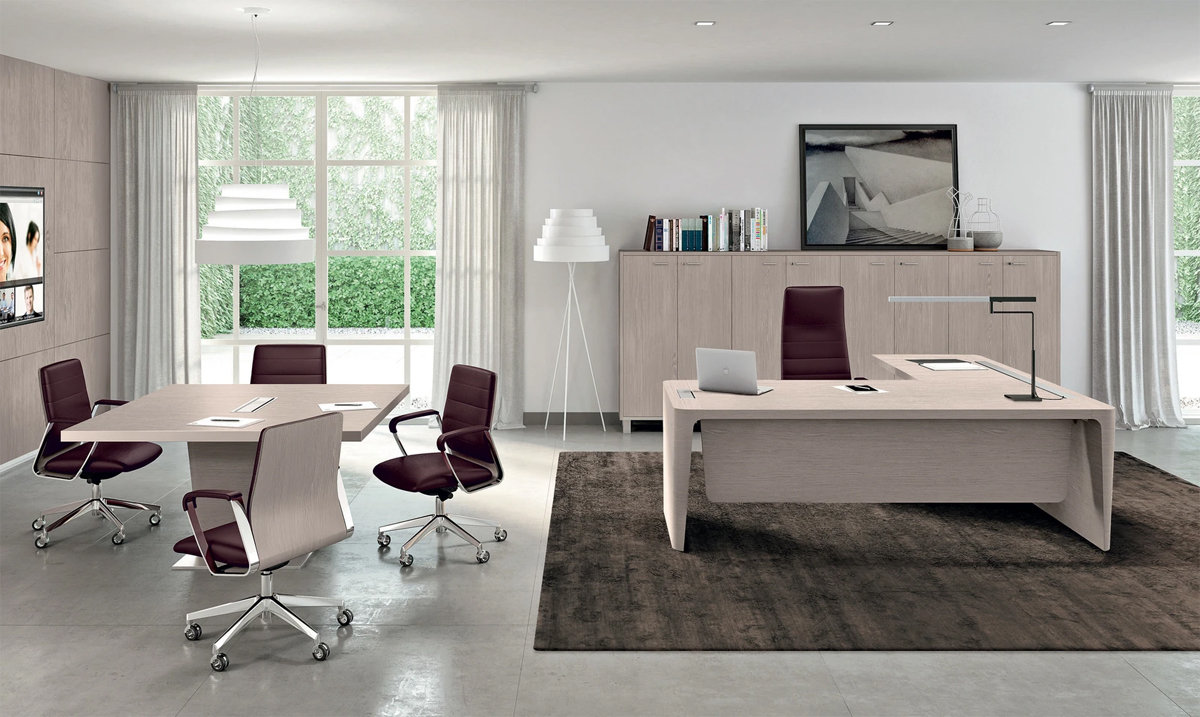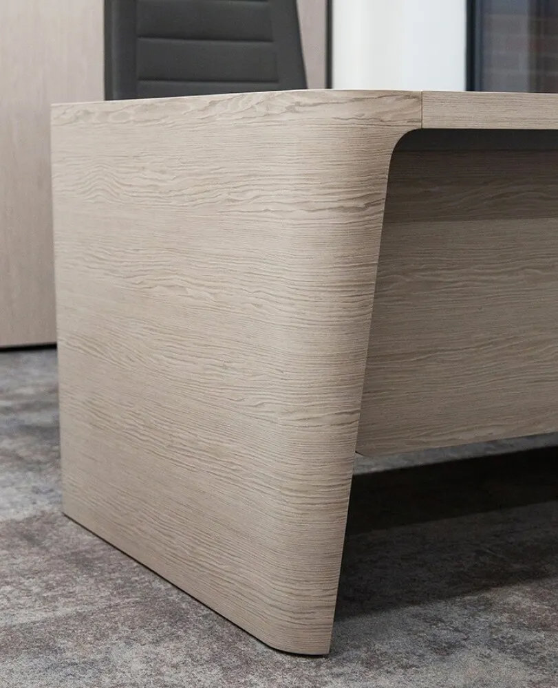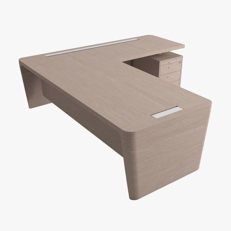 Italienskt exklusivt hörnskrivbord med panelben klädd i fanér. En kombination