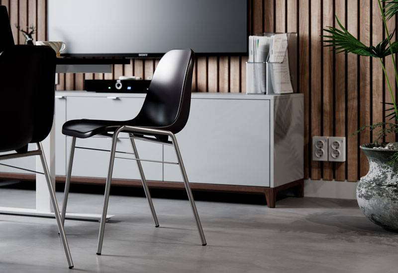 Stolen är enkel att rengöra och förvara. Passar som en smidig mötesstol,
