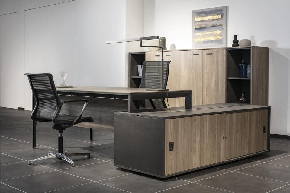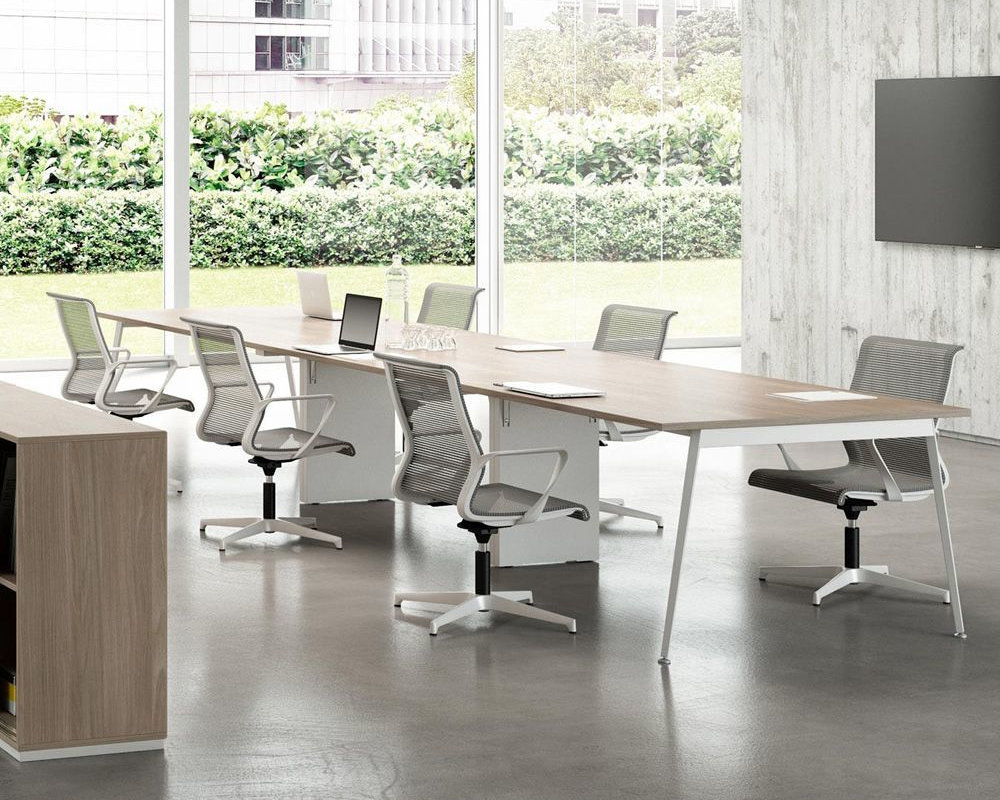 Modern konferensstol klädd i behagligt meshtyg för långa möten.