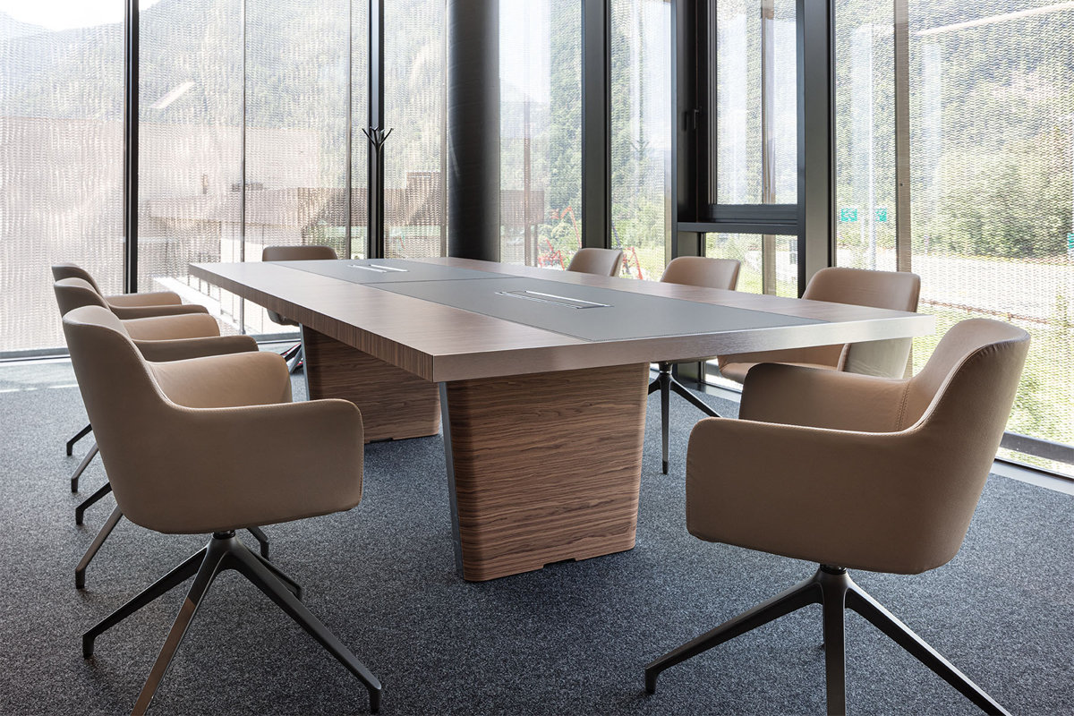 Modern och mycket populär konferensstol klädd i tyg eller läder.