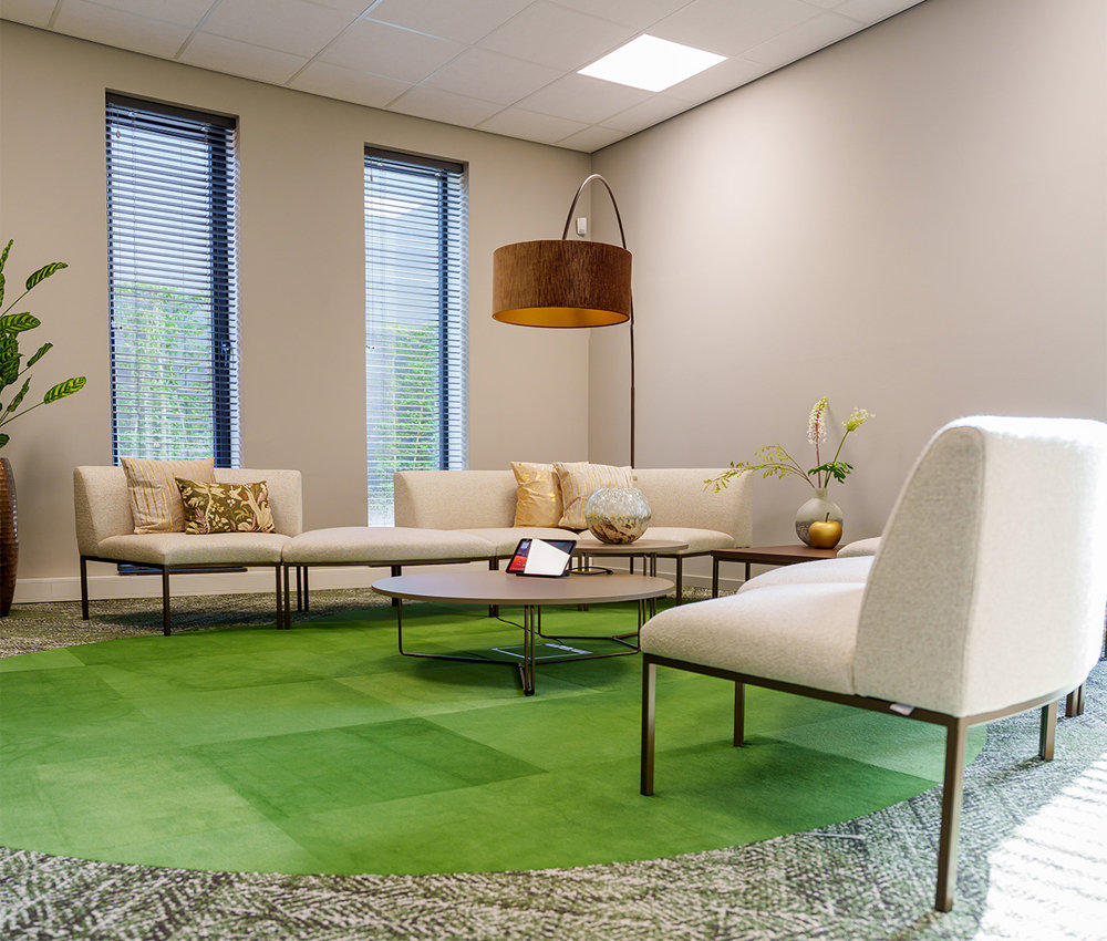 med andra svängda Astro-soffmoduler samt Astro svängt soffbord.