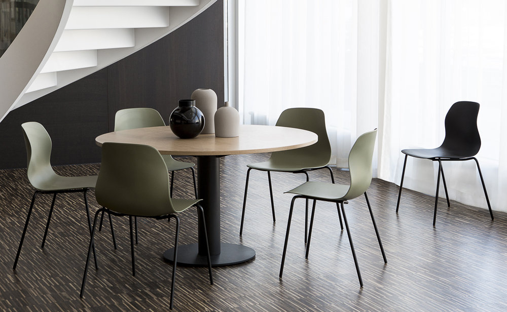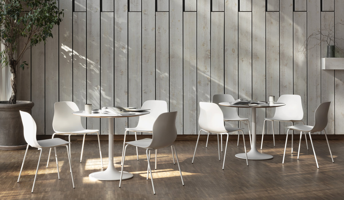 Stapelbar enkel och lättplacerad stol i stilren design med mjuka linjer.