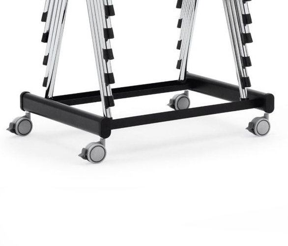 Denna vagn är avsedd för smidig transport av staplade stolar. Den stabila konstruktionen gör det enkelt att flytta flera stolar samtidigt, vilket underlättar hantering och förvaring i konferens- och utbildningsmiljöer.