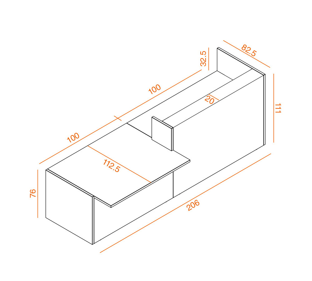 Z2 Light reception, nedsänkt, 206 cm, Valnöt, Höger sida