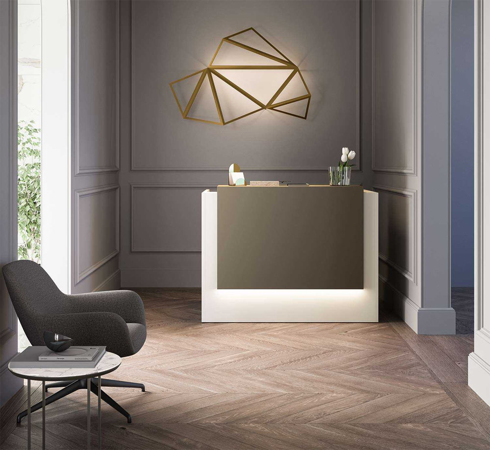 Rak liten receptionsdisk i tre olika längder med sidopaneler.